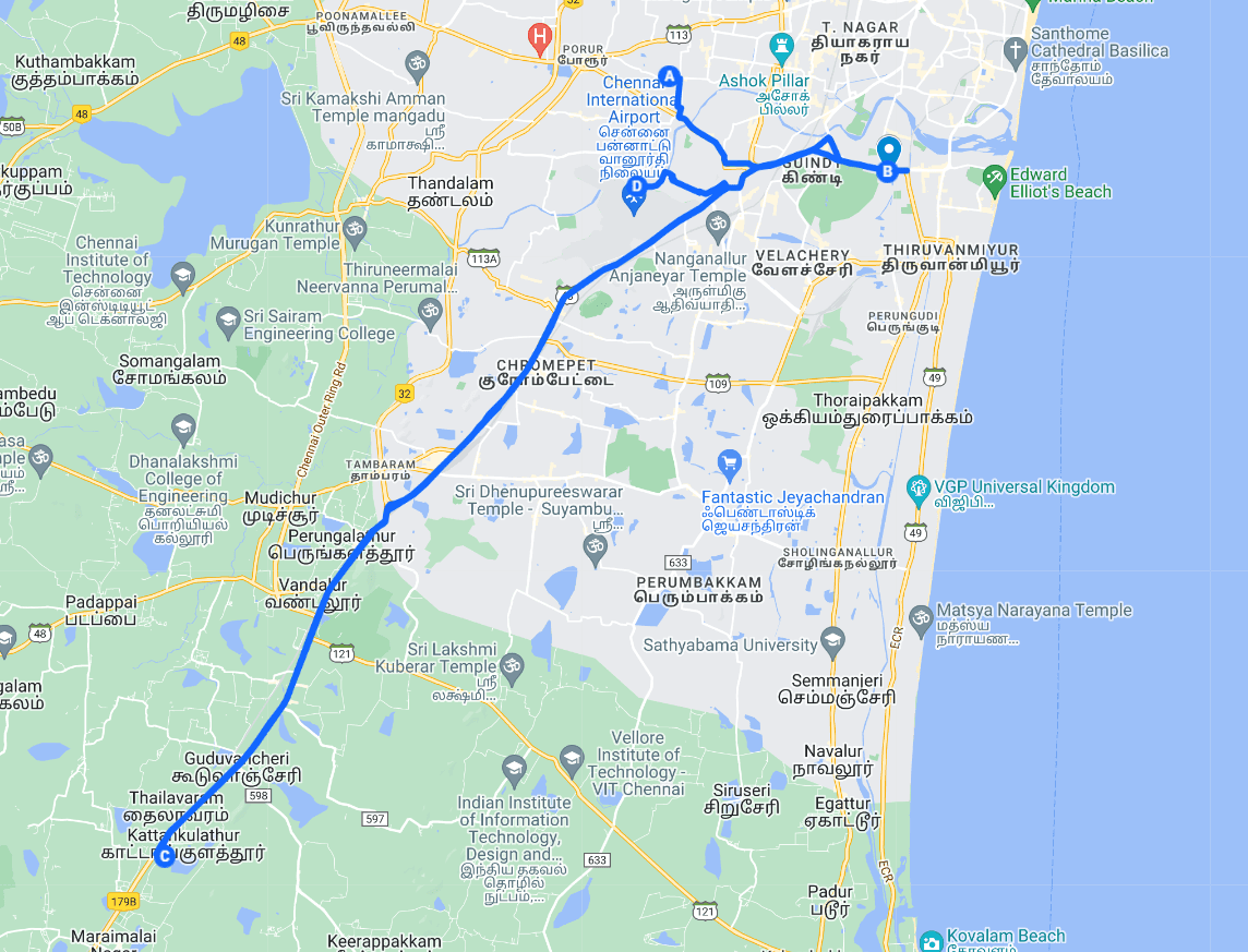 Initially we have decided to put up 4 electic stations in the city of Chennai. This functionality is important to be integrated into the e-Bike sharing app as it will allow the users to locate nearby bikes on the map.It will allow them to hire the bike easily with just one tap on their mobile screen. Electic stations will be utilised as the point of contact, customers will have to start and end their ride at any of these 4 electric stations. Initially we are setting up electric stations keeping in mind the locations with largest number of college student footfall. These 4 places are: